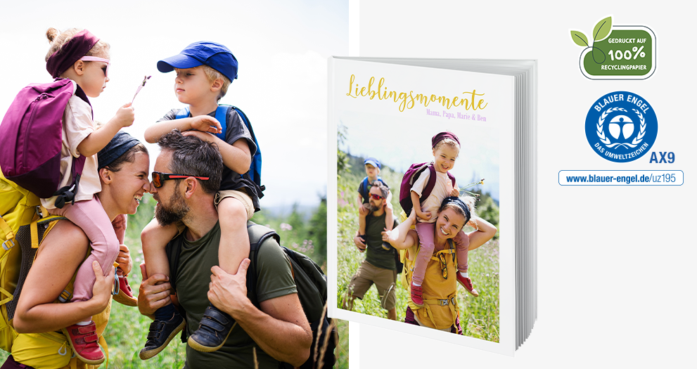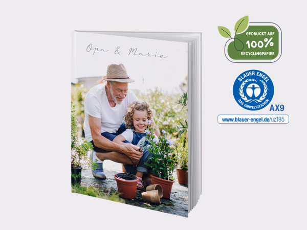 Dank des verstärkten, matten Hardcover-Einbands mit Recyclingpapier sind Ihre Erinnerungen am Natur Pur Fotobuch® jetzt noch besser geschützt.